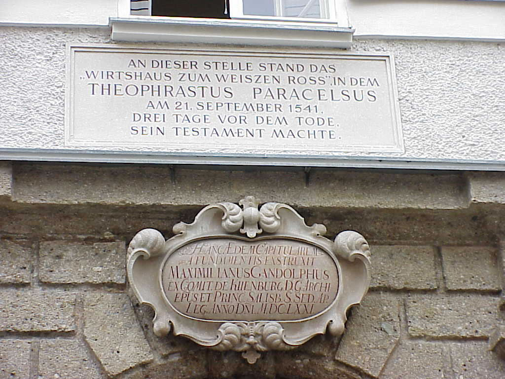 Above the door is the historical plaque (upper) and the dedication of the present (old) building.