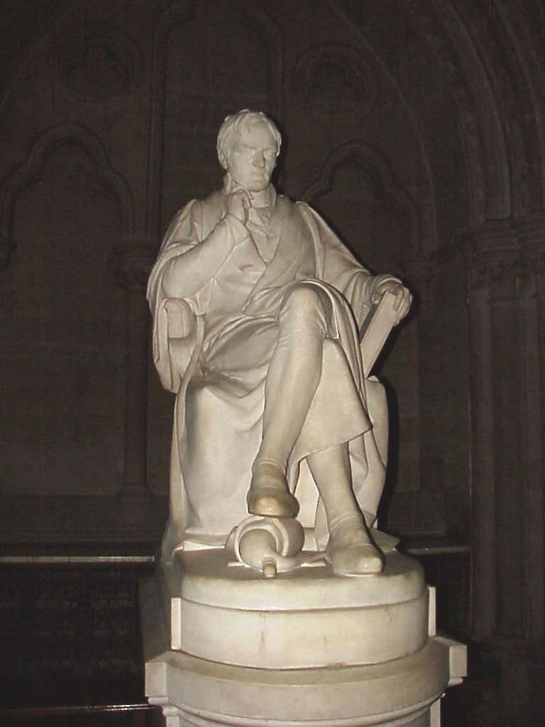 Entering the Town Hall through the main entrance. In the vestibule is this statue of John Dalton, the founder of the atomic theory. See the next photo for the accompanying sign for details.