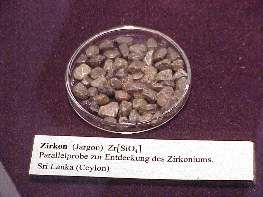 mineral. "Zircon. Parallel sample of discovery of zirconium. Sri Lanka (Ceylon)."
