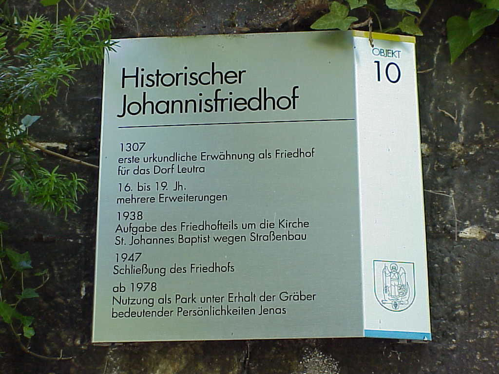 History of the cemetery (Johannisfriedhof), which dates from 1307.