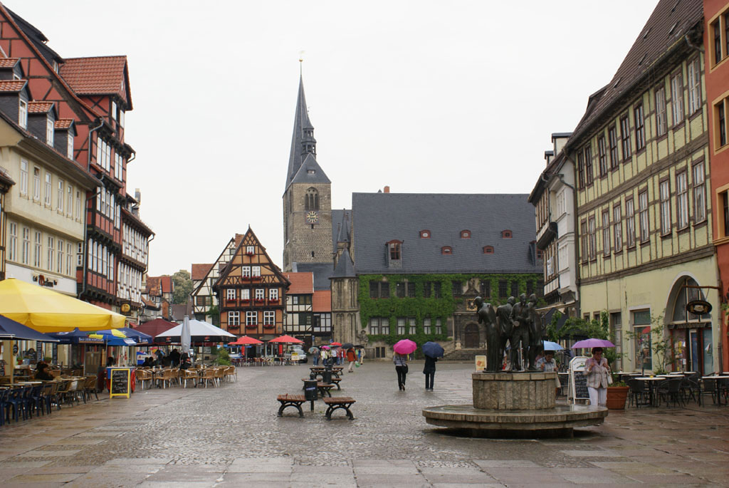 The main courtyard of Quedlinburg, with the Rathaus in the distance.