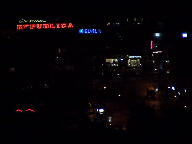 Cluj-Napoca, Romania/cluj097Previous | Home | NextNighttime view from the Transylvania Hotel. The McDonald's sign (look closely) prompted one of the old-timer Romanians to ruefully complain about the "Coca-cola-ization" (Americanization and loss of traditional Romanian scenes) so soon after the fall of Communist Nicolae Ceausescu in 1989. |