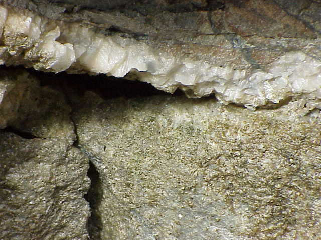 A closeup of the layer. As these layers are exposed and worn away by natural erosion, the minerals become scattered about the landscape, giving rich collecting areas such as Bell's Grove.