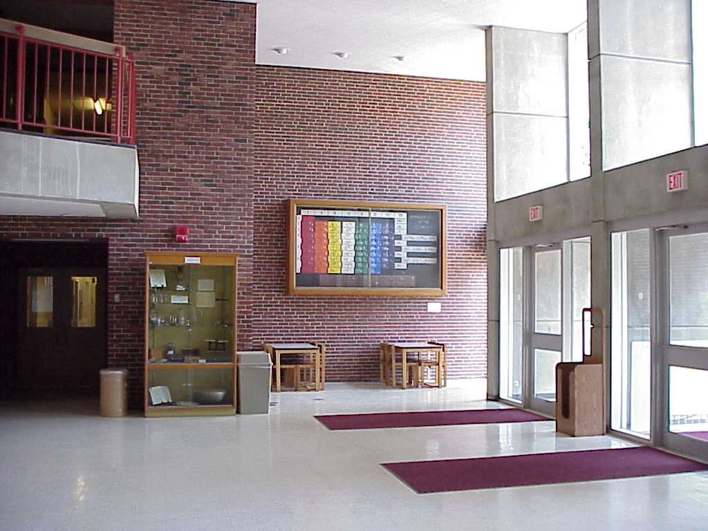 The entrance to Parsons Hall. Note the exhibit case and the Periodic Table (see next three photos).